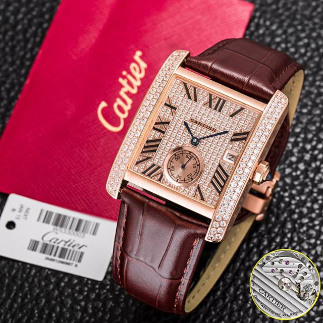 FFF 金 全钻100 DDD Tk新品2025卡地亚 Cartler 坦克满钻系列,刘德华同款英式坦克系列终级版本,方形男士手表,表径:34Mmx44Mm 搭载进口全自动机芯Cal.1904-Ps Mc Et日期显示 双卜蓝宝石水晶玻璃,进口意大利皮带 深度防水30米。这是卡地亚制表为摩登雅士献上的赞歌,以其精准的造型、简洁的线条、自然低调的弧度与和谐的几何元素,尽显优雅风范。 DDD
