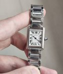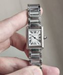 雅致的小方表 卡地亚坦克Must小号女款 卡地亚坦克Must小号女款 ,小表盘藏着大态度,通勤党本命是那种“戴十年都不过时”的硬货。 方正表盘带着坦克系列标志性的硬朗线条,没有多余装饰,罗马数字和蓝钢指针干净得像秋日晴空,精钢表带打磨得细腻却有筋骨,贴在手腕上利落又舒服。 小号尺寸对细手腕超友好,搭西装是职场人的冷静自持,配衬衫又有法式的随性松弛。它不喧哗,但抬手时那抹低调的光泽,就是“我选的,就是经典”的无声宣言 通勤表该有的样子,实用又有格调。