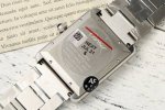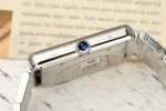 表壳 大号:40.85Mm*31Mm,打破了传统腕表表身的圆形造型,以上下对称的平行表框衬托方形的表盘,硬朗简约的风格使人过目不忘。线条简洁、刚毅,具有很强的工业风格。流畅的弧线和锋利的边角,展现出现代感和时尚感。坦克履带式的表耳,八角形表冠上,有卡地亚标志性的蓝色尖晶石,识别度非常高。