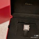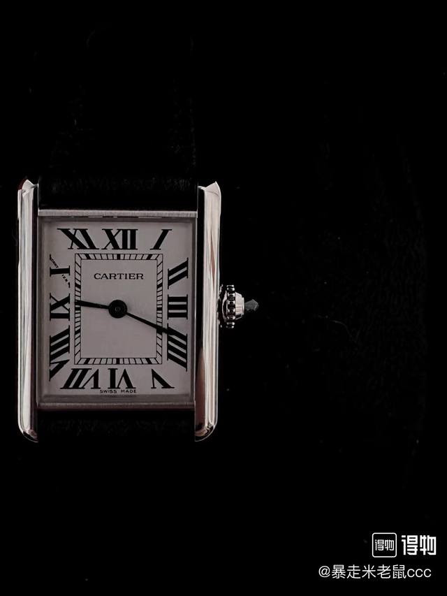 Af完美展现坦克系列低调而不奢华的复古风格 Ddd Af卡地亚Tank坦克系列腕表 Ddd 表壳 小号29.5Mm*22Mm,打破了传统腕表表身的圆形造型,以上下对称的平行表框衬托方形的表盘,硬朗简约的风格使人过目不忘。线条简洁、刚毅,具有很强的工业风格。流畅的弧线和锋利的边角,展现出现代感和时尚感。坦克履带式的表耳,八角形表冠上,有卡地亚标志性的蓝色尖晶石,识别度非常高。 Ddd 表盘 表盘由经典罗马刻度显示,白色表盘搭配蓝钢指针,在盘面中央,有方形刻度内圈。融合一流品位和前卫设计的坦克腕表,现代感历久