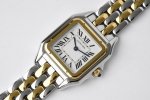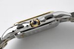 Bv最新升级版本 中号27X37Mm DDD 卡地亚panthèRe De Cartier猎豹腕表使用方形双层表壳看起来更加立体大方,更加突显出腕表的优雅与经典。白色表盘上,卡地亚式时标设计更为腕表注入一份品牌的魅力。蓝色中央时分针宛若在两只随时间而舞动的精灵,为整款腕表再填华彩。 DDD 与传统卡地亚腕表一样,表冠上镶嵌有一颗具有品牌代表性的蓝宝石,向观表者展现高级钟表珠宝品牌卡地亚的独有魅力。表冠采用防滑纹理设计,方便对腕表的调试。两边的表冠护桥也为腕表增添了一份安全防护。 DDD 相比背透设计,密底