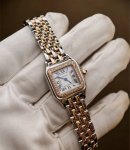 Cartier卡地亚 猎豹系列 石英机芯 30M防水 女款 瑞表 22*30Mm 白色表盘 精钢18K玫瑰金表带