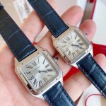 Cartier Santos-Dumont腕表,卡地亚山度士系列情侣款腕表,卡地亚石英。卡地亚山度士表款,原装进口石英机芯,精钢表壳,圆珠形表冠,镶嵌一颗凸圆形蓝色尖晶石,罗马数字时标,剑形蓝钢指针,蓝宝石水晶镜面。山度士!全球最火的款式之一!可以承载岁月的经典之作,永不过时!独家渠道!二个尺寸总共不到100卖一一节奏!分别为小38X27.5Mm,大号43.5 X31.4机芯为瑞士石英机芯。真皮表带.世界顶级的与腕表品牌卡地亚Cardier,在超长的品牌历史上制作出众多经典,比如腕表中的桑托斯Santos