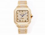 F4 真莫桑钻!卡地亚 Cartier 山度士系列 满天星系列 DDD 奢华至极!极少量到货!满天星卡地亚山度士满天星莫桑钻版本,整表纯手工镶嵌 D 色 Vvs 级莫桑钻 Moissanite Diamond 全部石头都可以通过专业测试笔测试,莫桑钻 Moissanite Diamond 折射率2.65-2.69 钻石2.42 ,具有与钻石相同的金刚光泽, 火彩 Shine 更强,硬度仅次于钻石,镶嵌工艺采用花式状不规则镶嵌 Flower Setting ,不同于市场莫桑钻加工的工艺,做到石头之间非常密集