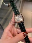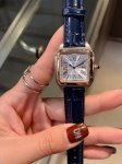/ Santos-Dumont卡地亚山度士超薄杜蒙系列腕表,知性女士腕表,316L精钢表壳,蓝色尖晶石圆珠把头,阳光射线纹饰磨砂效果,经典罗马数字时标,珍珠贝母表盘