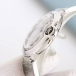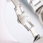 整体更加精致正装!罗马刻度黑色油印更立体丰满,麦头所有英文字体改正新版,更清晰立体,而中间菊花纹路放射清晰,更加呈现立体视觉享受!钢带款新表扣己改款,变薄变小更精致!表带钢粒整体也微薄区别于之前版本!