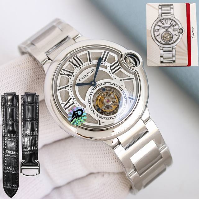 Uf+ 2025年卡地亚最新版本42陀飞轮蓝汽球男表!有白面和灰面!