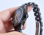 推出香奈儿J12绣花针系列H9762, 表壳:黑色精密陶瓷和黄18 K金色表壳 表圈:蓝宝石水晶单向旋 转表圈 表盘:黑色漆面表盘,镀金时标和斜面 表冠:凸圆形