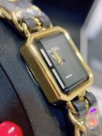 香奈儿chanel Premiere系列腕表!1987年灵感源自巴黎芳登广场的轮廓 中古方糖!表径26.1X20毫米,漆面表盘、矿物质水晶玻璃,表冠镶嵌蛋面切割缟玛瑙表冠,编织带完美体现怀旧风格,复古方糖女士腕表!