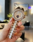 玫钻 全新推出的香奈儿 升级版全钢间陶设计,J12 Chanel 陶瓷腕表韩国陶瓷工艺,腕表设计来源正品日月星辰小表盘 搭载进口石英两针半机芯,圈口全镶钻与陶瓷圈完美的搭配,使这款腕表在视觉上显得格外引人注目。33Mm尺寸10Mm厚度