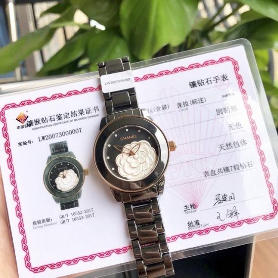 配盒 支持香港、美国直邮 Ddd J12山茶花系列 ,重磅再现终于不负众望 拿到原厂渠道J12 ,它不仅是一款追逐流行的时装表,而是融合精密设计,传统制表工艺和经典审美的专业,打动我的,不仅是它优雅而简洁的线条,纯粹而隽永的色调,更是她对于每一处细节的完美追求,大家可以硬气的轰炸你的朋友圈了开春大作 推起来 吊打所有市面货色 石英款!Chanel香奈儿J12系列,品质 ,进口瑞士同型号机芯 零故障 进口高科技精密陶瓷搭配精钢旋入式表冠, 蓝宝石玻璃镜面,原装石英机芯尺寸33Mm,三重折叠式精钢表扣 防水