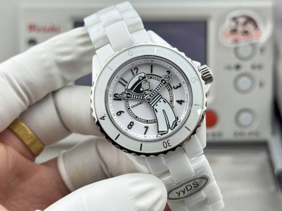 FFF J12-“公仔图案”系列 DDD 2026最新款,香奈儿腕表创意工作室再次赋予J12腕表新的诠释,在保留经典元素的同时,带来了焕然一新的惊喜设计。黑色和白色精密陶瓷两个表款,表盘点缀着香奈儿女士卡通形象。J12 腕表的诞生颠覆了制表界的传统观念,精密陶瓷一举成为珍贵的制表材质。该系列推出搭载Caliber12.1自动上链机械机芯的全新表款。香奈儿唯一一款背透设计, DDD 尺寸:38Mm, DDD 材质:陶瓷,镜面蓝宝石 DDD 搭载Caliber12.1自动上链机械机芯背透设计 DDD