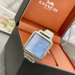 最新款出货~原单Coach 女士手表小方表,造型赋予Cass 腕表现代而独特的风格。蒂芙尼蓝面~设计光滑的链式、漆面表盘,并饰有数字和闪亮水晶标记。型号:14504494,尺寸:28Mm,配专柜全套包装! DDD