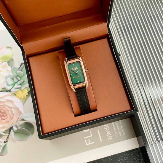 Coach 蔻驰cass系列茶玫瑰表盘小牛皮石英手表女表小方糖小方表。 立体感茶玫瑰搭配个性方形表盘,优雅时尚,设计感小巧精致...