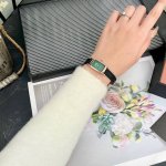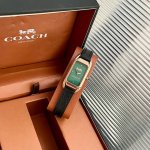 独家原单批 罗一舟推荐 Coach 蔻驰Cadie小绿表小方糖,优雅简约,时尚精致,经典马车Logo浮雕,天然珍珠母贝表盘,复古马鞍型配色,经典不过时,型号:1