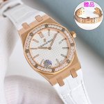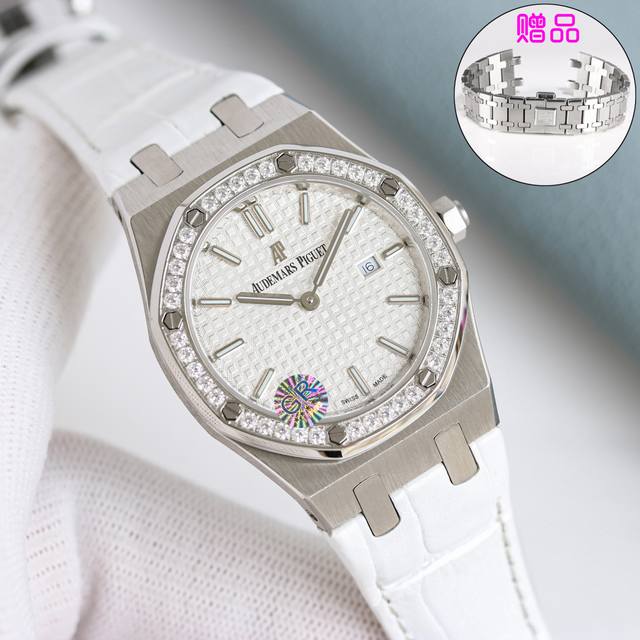 白 -金 钻+50 送钢带 DDD Gr出品,33Mmaudemars piguet爱彼 皇家橡树系列67651Or女士石英腕表~闪耀登场!女神百搭款,闪闪惹人爱! DDD Gr购入正品拆解开模,全程Cnc打磨,多次校对调整版型,棱角分明。表壳直径33Mm,多边形状表圈与表壳精密相合,表圈以六边形螺丝栓固定在表壳上 圈口镶嵌精美施华洛世奇钻,璀璨夺目 表带链节精致规整,链节经过上百次细致的打磨处理,呈现出完美的纹理。折叠式表扣开合简单,佩戴方便。腕表表耳处呈弯折状,可以保证腕表与腕部更加贴合。 DDD 表