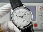 白 -金 Gf积家小丑 Master Ultra Thin RéServe De Marche超薄大师系列动力储存显示腕表将纯美线条与纤薄的精钢表壳完美融合,并