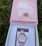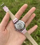 Fila梦幻流光手表,贝母表盘在阳光下像藏了银河,粉皮带和我浅粉T恤适配度拉满,日常出街、校园上课戴都很可。 表带是真皮的,贴手腕不勒,石英机芯走时稳。七夕送女