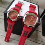 包装:30 古驰 Sync情侣款透明款石英表,风格大气、女36 毫米和男46 毫米。彩色的橡胶表带搭配透明尼龙表壳,Gucci 辨识度极高的条纹设计元素贯穿表带、呈现出色彩跳跃、反差对比之美。球场形的精钢表圈、旭日纹表面、316精钢表壳,原装瑞士进口机芯。通过色彩、纹理和材质的炫酷搭配打造出一款引领青春潮流、颇具都市摩登风范。支持验货。 DDD