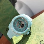古驰 Gucci新款新款,Gucci Dive 系列腕表全新亮相,以潜水表为设计灵感,蜜蜂、星星 等元素点缀透明表盘,唤起本真记忆。 在可持续工艺的加持下,这款