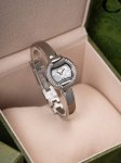古驰Guccl最新手镯款,表径25Mm,厚度7.5Mm,表面把头都有经典双G Logo设计元素,非常经典,适合小手腕佩戴,采用原装进口瑞士石英机芯,法国蓝宝石水晶镜面,表壳镶满施华洛世奇真水钻18K金工艺,外型精巧别致,360度惊艳,上手效果极佳,精致奢华有内涵! 升级内容如下,机芯精简版C1Ct163 61Myota正式面世,指针高度通过改良浓缩进一步压缩到了6.2个丝,姐妹们可放心搜索下能在机芯上加锆钻的,目前来看C1Ct163-61机芯绝对能排上第二,至于第一目前还尚未发现、字面重做由原来的15个丝