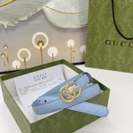 特 2.0Cm新款Gucci 双面头层牛皮压花 配Cc铜扣
