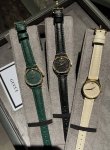 Gucci 古驰G-Timeless系列,配有精致的凹刻 皮表带和表面,表框是金色,拍起来有点亮哈,12点处是Gucci家的经典小蜜蜂金色表壳与米白色百搭又气质 !黑色表盘款,戴起来大气,简单还很运动!绿色是独家定制新色,特别又复古,上手效果好看,搭配任何衣服场合都合适!尺寸28Mm石英 DDD