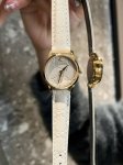 / Gucci 古驰G-Timeless系列,配有精致的凹刻 皮表带和表面,表框是金色,拍起来有点亮哈,12点处是Gucci家的经典小蜜蜂金色表壳与米白色百搭又气质