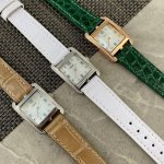 爱马仕Heure H系列 最经典的H字表盘 字面天然贝母手工打磨而成,对这种方形表盘的手表真的一点抵抗力都没有。表盘大号尺寸21Mm21Mm,316精钢表壳精工打磨“H”型 线条流畅 优雅 设计感十足 凸显气质 知性度100% 底盖名匠手工雕刻徽章 非市场激光雕刻 防眩晕蓝宝石镜面 镜面镶嵌极其复杂,生产报废率极高 瑞士进口石英机芯 在一些高端客户的要求下,表带采用新加坡高光泥螺鳄腹部皮 采用意大利水染技术, 此高光鳄鱼皮国内是无法生产的,配件和机芯以及工艺耗时两年也是费劲了心思 ,专业玩表的玩家从细节就