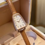 金 钻 100 DDD HermèS 推出 Galop D’Hermes 系列新一季腕表作品,依然从马术运动中汲取灵感,表壳独特的圆润造型源自于 马镫 元素。新作以更细巧的 20X27.2Mm 尺寸亮相,更贴合女性纤细的手腕。 DDD Galop D’Hermes 系列发布于 年,由 HermèS 与美国非裔艺术家 Ini Archibong 合作设计,以柔和的表壳线条重新演绎 马镫 造型;表耳亦模仿 马镫 链接结构,与表带形成自然过渡;表冠位于6点位置,让整枚表呈现完美对称布局。 DDD 简洁的双针表盘