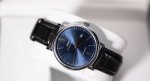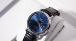 这款腕表采用了直径为40毫米的精钢表壳,搭配深蓝色表盘,表盘上镶嵌着金色的指针和时标,形成了鲜明的对比,使得时间显示清晰易读。蓝宝石水晶玻璃表镜不仅保护了表盘免受刮擦,还提供了通透的视觉效果。
