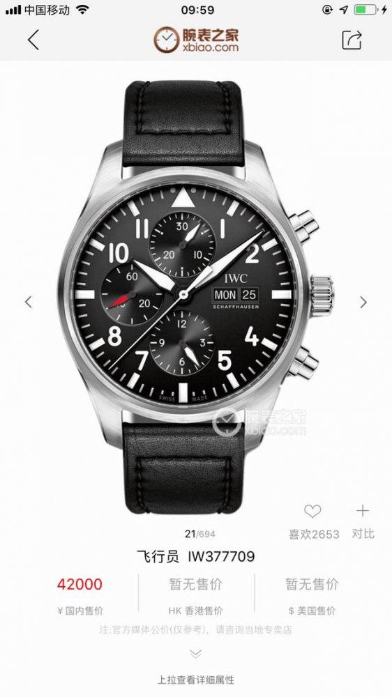 型号Iw377709,新款首发!硬货!渠道出口订单!原封!缺个经销商印章就是正品!万国飞行员计时腕表,拥有高性能腕表的典型品质:精准性,功能性和可靠性。机械六针计时码表,这款防水达6巴的飞行员腕表搭配牛皮表带,原装瑞士Eta-7750自动机械机芯 也就是万国自己命名的79320 ,防眩目蓝宝石玻璃,正装43Mm表径,百看不腻,专柜都一表难求!保卡、吊牌都有贴标型号及手表身份编号,能拿到这么完美的货,真是为你们感到幸福!性价比无敌,独家货源!! DDD