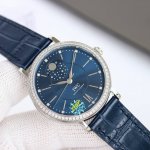 2:精钢表壳镶嵌纯净无暇钻石,已经显现出月相款的尊贵身份,简约的刻度,12颗无暇小美钻与指针,依旧是柏涛菲诺一贯的气质--优雅而不失干练。