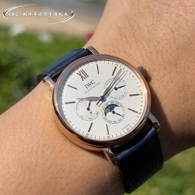 FFF 颜值巅峰 倾情演绎 DDD Iwc旗下最耀眼的明星,万年一瞬,品鉴Iwc万国柏涛菲诺万年历腕表! DDD 1 机芯 采用3836-2型自制机芯,其机芯运转稳定,月相处更是1:1还原正品,在光线下月相中的星星太阳更是明亮发光,走时精准,几乎零返修! DDD 2 表壳 正品开模,1:1完美还原!腕表尺寸40Mm,整个表壳采用独家研发的Cnc精磨工艺,与原装工艺效果如出一辙! DDD 3 表盘 表盘12刻度细节精益求精,1:1还原镀银表盘,9位更是1:1还原闰年设计,采用双面防反光拱形镀膜镜面,使其整体