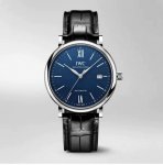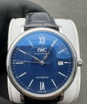Iwc万国柏涛菲诺自动机械机芯 30米防水 男表 瑞表 40Mm 40*9.2Mm 蓝色表盘 精钢表壳 真皮表带