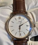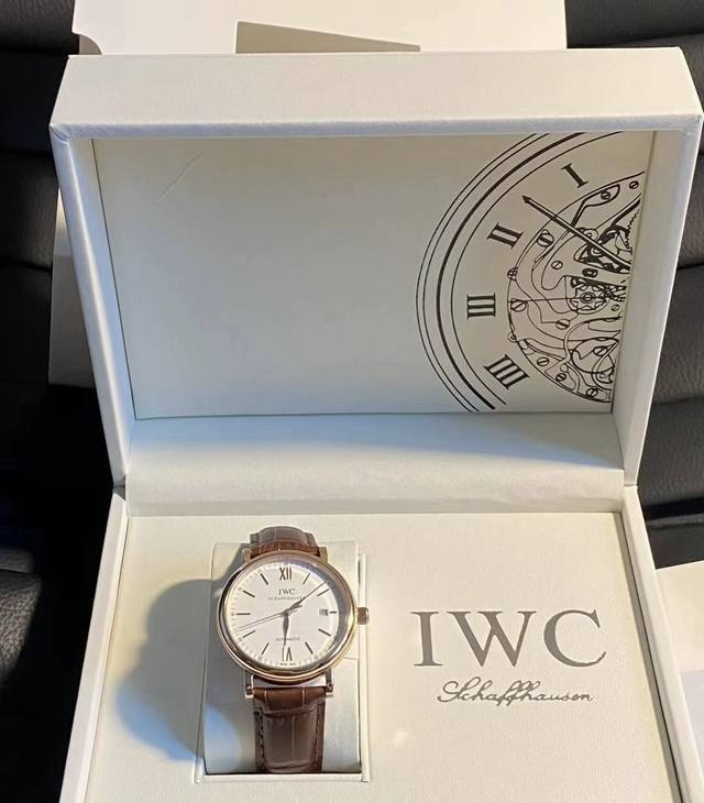 Iwc万国 柏涛菲诺系列 自动机械机芯 18K红金表壳 男表 瑞表 40Mm 银色表盘 K金18K玫瑰金表壳 鳄鱼皮表带