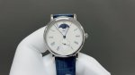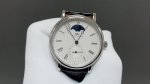 表壳 316L精钢表壳,打磨抛光非常圆润。小秒针盘位于6点钟位置附拨针停秒功能,配有实心条钉刻度罗马。12位配搭月相位置跟原版一致。我们可以注意到,柳叶形指针分别指示小时和分钟,双面防反光拱形蓝宝石镀膜镜面 表带 意大利小牛皮 机芯 自主研制自动上链机械机芯,机芯稳定,走时准。两针半