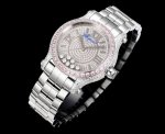 yf,白 -金 Yf-新品 满钻 快乐钻36Mm 2025最新款满天星 原装搭配美洲鳄鱼表带 搭配2892机芯 萧邦 Happy Diamonds 作为萧邦最畅