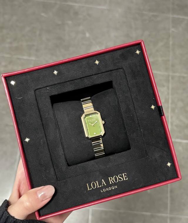 Lola Rose罗拉玫瑰方糖小绿表,新款新奢华小众高级感! DDD 最新四色齐!绿玛瑙,孔雀绿,岩玉粉,黑砂石!! DDD Lola Rose以全新面貌演绎品牌经典之作,设计师扑捉春日伊始的一抹嫩绿色泽,将清新灵动融入表盘,搭配别致闪星刻度个金银间跃表带,宛如一颗经营方糖于腕间点缀活色彩与经典之上探索多面美好! DDD 型号Lr4708,进口日本石英机芯,尺寸25M19M,八边立体切割面,宝石般坚韧清澈,搭配光金表壳,金银银相连表带,精巧蝴蝶扣设计,便捷摘取!配全套一致包装! DDD