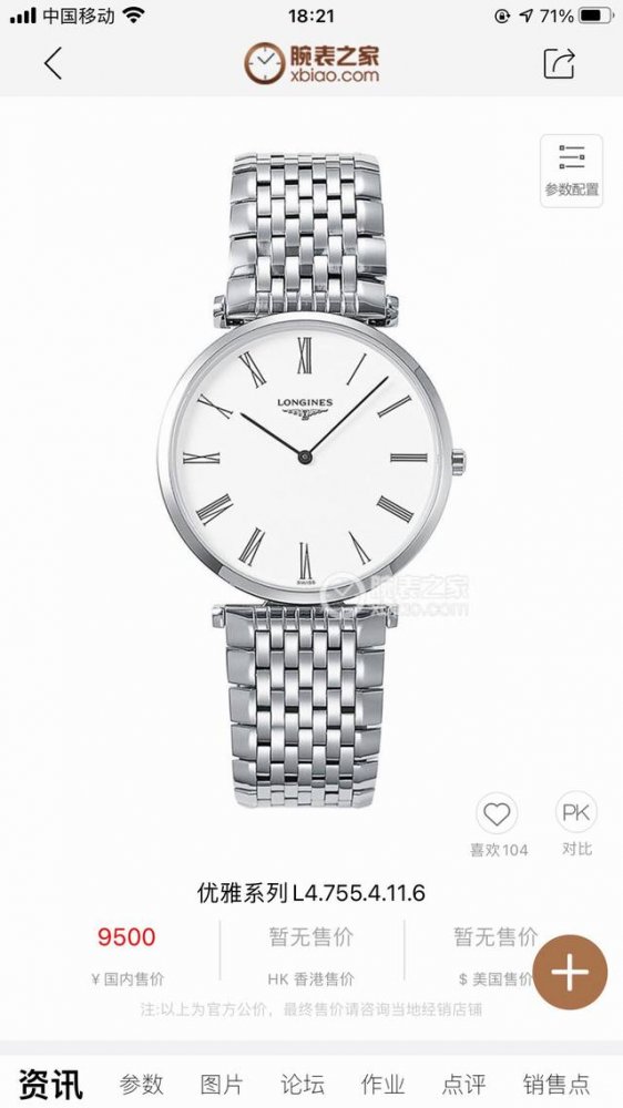 白壳 ,金壳 ,钢带+20。 西铁城白壳560,金壳580,钢带+20。 经典再次升级,两种机芯随意选择 今日推荐 经典热卖 浪琴-Longines...