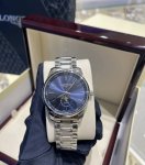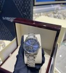 2经典的浪琴蓝色太阳纹饰底盘,搭配立体条刻时标和镀银指针整体感觉精致有质感!