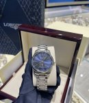 2经典的浪琴蓝色太阳纹饰底盘,搭配立体条刻时标和镀银指针整体感觉精致有质感!