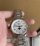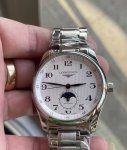 浪琴名匠系列四针月相系列机械全自动男表 40毫米大表盘 白色大麦盘面 淬火烤蓝柳叶指针 阿拉伯数字刻度 6点位日历显示 月相显示 蓝宝石镜面 搭载浪琴背透机械全自动L899.5最新款机芯 双T避震器 硅游丝 客户 年05月24号购买于新疆伊犁天百国际购物中心 新款保卡 五年全球联保 盒子 保卡 证书齐全 专柜售价27690现货放漏15990 DDD