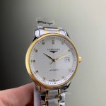 白壳 金 钢20浪琴 LONGINES 最新情侣款原装进口石英机316L精钢表壳 矿物质超强玻璃镜面 进口真牛皮表带 精钢表带 男直径40mm...
