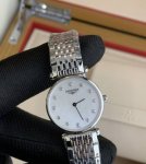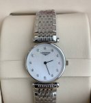 / 浪琴嘉岚系列,石英机芯女士腕表,表径24Mm,整表全精钢材质,白色珍珠贝母盘面,钻石刻度,公价16640,全套附件齐全,型号:L4.209.4.87.6#长春二