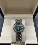 浪琴心月系列鞋款远山绿真的太绝了,实物看着非常高级,30.5Mm的表镜上手效果非常时尚,底盘太阳纹饰搭配璀璨钻石清透亮眼,绿色也寓意着幸运这款性价比不错,送人自