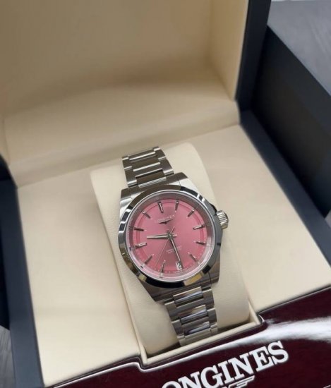 浪琴新款“元气粉”一眼爱了 2浪琴新款康卡斯悦动“元气粉”一上市就让人眼前一亮![彩虹R]无论是多巴胺成套穿搭还是日常搭配都让人眼前一亮,带来一天好心情![鼓掌R][鼓掌R] 精致打磨的316L精钢外壳,“元气粉”底盘镶嵌立体时标整体看上去干净又精致!