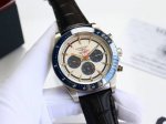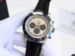 1字面是独特的“熊猫眼”主要有“黑白”“深海蓝”“远山绿”“香槟金”等多款经典搭配款色和三眼计时盘还加上黑色时尚陶瓷圈陶瓷圈使用Clean 字体更加立体圆润