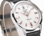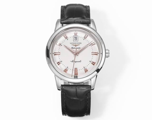 浪琴-Longines 康卡斯系列 经典“独眼龙” DDD “独眼龙”是浪琴于上世纪60年代推出的一款腕表,当属于康卡斯系列。采用金苍蝇刻度和金指针,最具特色的设计便是位于12点位的日历窗,因外观神似获得“独眼龙”昵称。 DDD 这款腕表,保留现代佩戴需求的同时,又尽显复古风格。日期显示窗是这款腕表的一大亮点,其参考浪琴史上有名的“独眼龙”表款设计,将日期显示窗设立于盘面12点钟位置处下方,辨识度极高。 DDD 作为经典系列表款,这枚腕表的表壳尺寸为40毫米,即保留了复古风格又符合现代审美,其内部搭载的进
