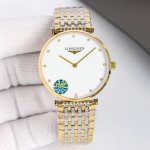 白壳 金壳 钢带20 浪琴 情侣对表 原装进口石英机芯 矿物质玻璃镜面 316L精钢表壳 直径男40Mm女30Mm...
